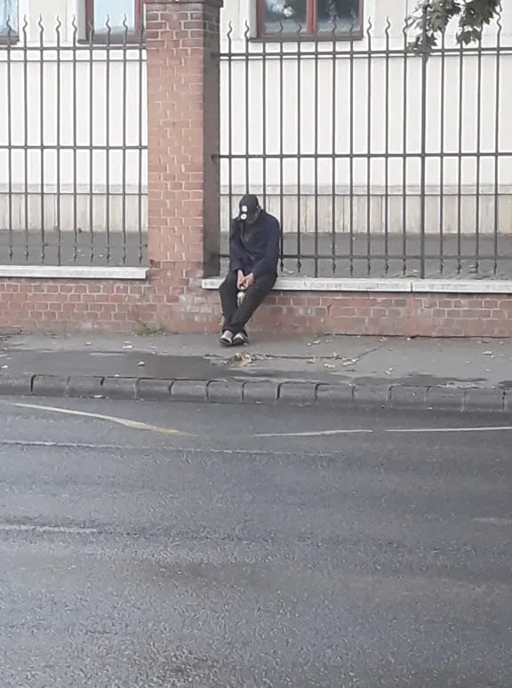 Két drogos támasztja a lámpaoszlopot: támolyognak, nem tudnak semerre menni, teljesen ki vannak ütve fényes nappal.