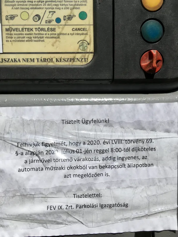 július 1-jén a köztéri parkolásért a budapesti IX. kerületben fizetni kellett, miközben a kormány közölte: július 1-jén még ingyenes a parkolás, csak július 2-ától kell fizetni és áll vissza a koronavírus-járvány előtti régi rend.