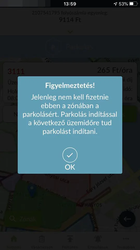 A mobilfizetés parkolási applikációban kiderül, hogy Budapest többi kerülete tudta a szabályt, mert a térképen kattintva mindenhol a „ jelenleg nem kell fizetni ebben a zónában” – felirat ugrott fel.