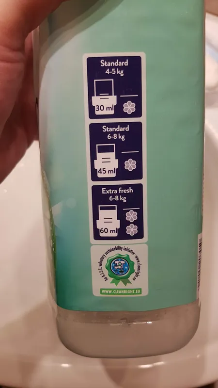 A Lenor Fresh Meadow öblítő adagolása pofonegyszerű: 4-5 kiló ruhához 30, 6-8 kiló ruhához 45, extra frissesség esetén 60 milliliter öblítőt ajánl a gyártó. Ezzel szemben mindössze két mennyiségi jelölés szerepel a mérőkupakban, azok is nehezen észrevehetők. Igaz, a 25 és 35 milliliteres mércékkel pont nem lehet kimérni a fenti adagokat.