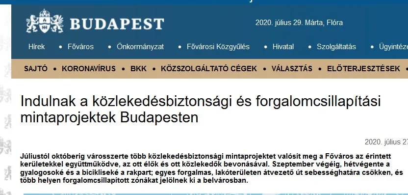A terv, ami ő forgalomszelídítésnek nevezett el, arról szól, hogy a fővárosban maximum 50 km/h-val autózhatunk majd, ott is, ahol eddig ennél nagyobb volt a megengedett sebesség, a mellékúthálózatokon általánosan 30 km/h sebességhatárt, míg a pihenőövezetekben 20 km/h sebességhatárt vezethetnek be. A „mintaprojekteket” véleményezni lehet, ennek alapján a Budapest Közút el fog készíteni egy „közlekedésbiztonsági tervet” és ez alapján ütemezik a további intézkedéseket – írja a főváros.