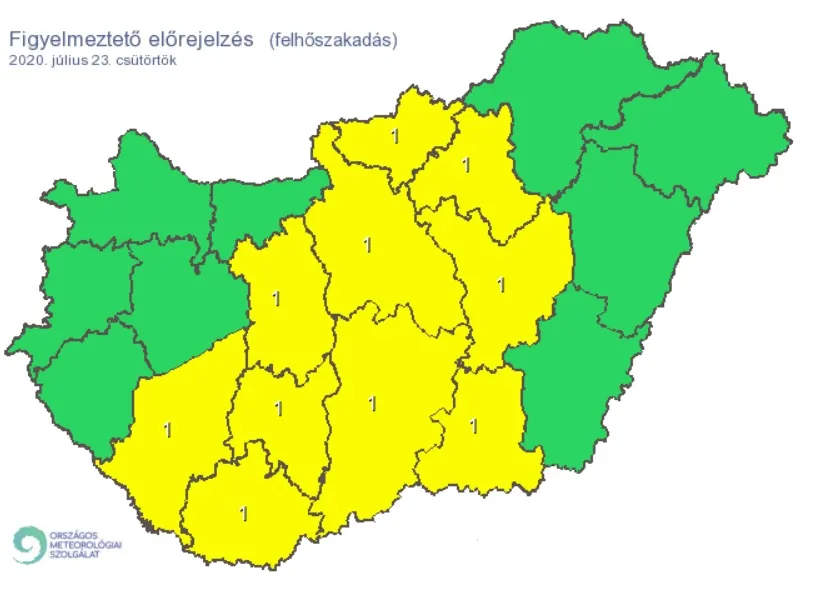 Elsőfokú figyelmeztetést adott ki az OMSZ.