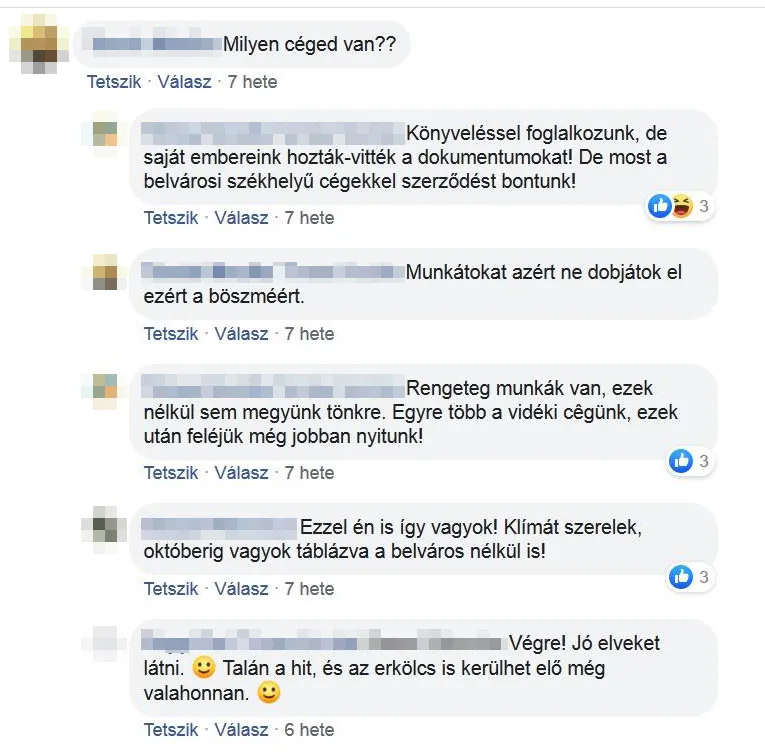 „Könyveléssel foglalkozunk, de a saját embereink hozták-vitték a dokumentumokat! De most a belvárosi székhelyű cégekkel szerződést bontunk! ”- írja a Facebookon egy könyvelő.