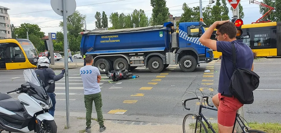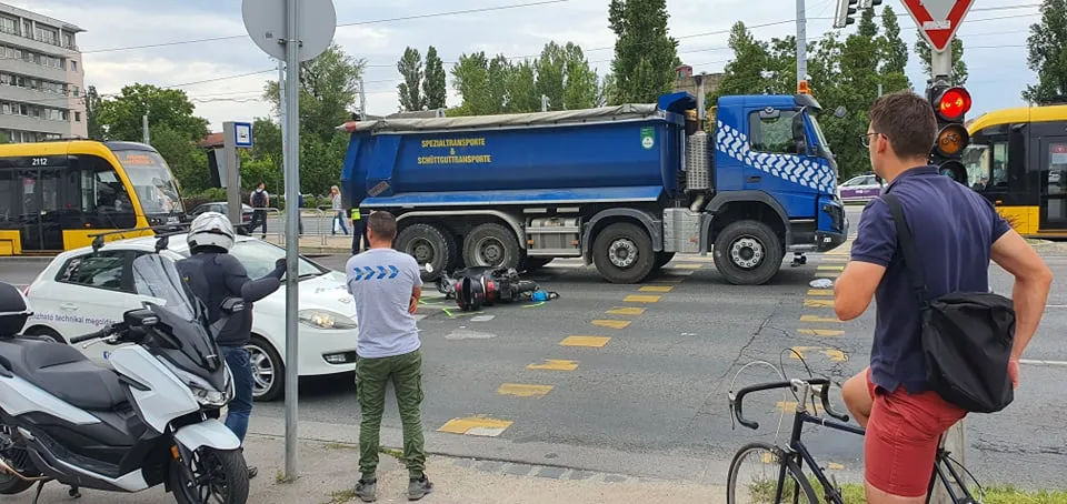 A Ripost olvasója szerint egy motoros és egy teherautó ütközött, a motoros megsérült, kórházba kellett szállítani. De az elsődleges információk szerint életben van.