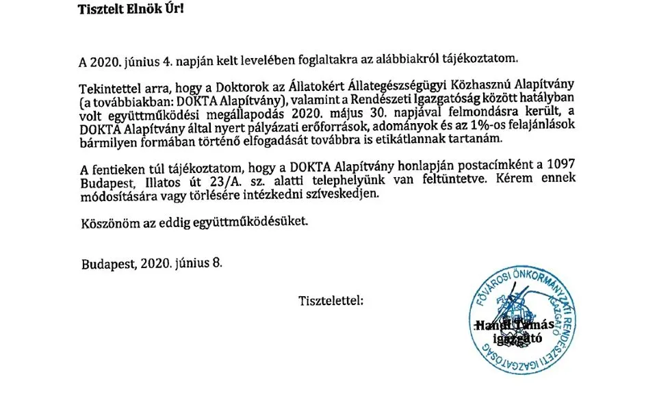 Most nem csak a Alapítvánnyal bontott szerződést a főváros, hanem a kiképzőkkel, rehabilitációt végzőkkel is.