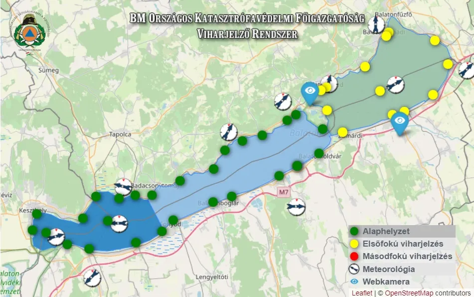 Az elsőfokú viharjelzés azt jelenti, hogy úszni, csónakkal és más vízi sporteszközzel csak a parttól számított 500 méteren belül szabad tartózkodni. A szélirány figyelemmel kísérése nagyon fontos.