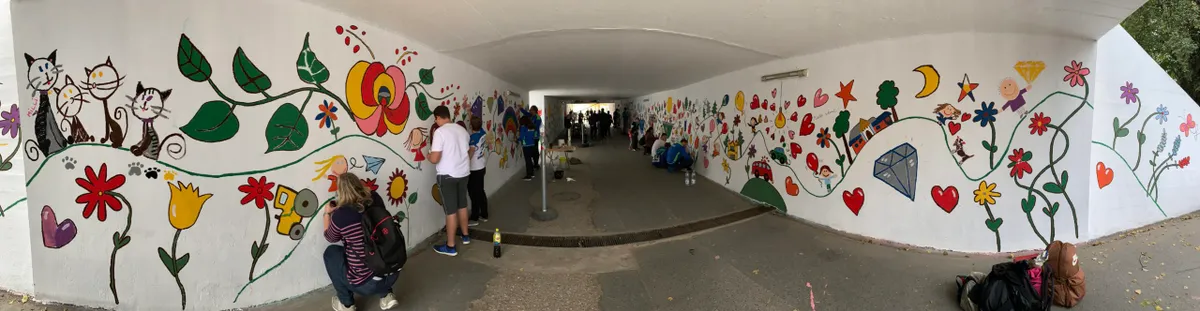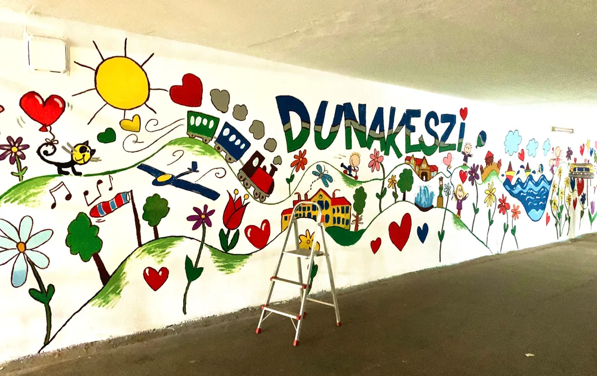 Vidám és színes – Dunakeszin egyre többen járnak csodájára az élénk színekkel és mintákkal gazdagított gyártelepi aluljárónak. Vámos Robi rajzművészt kérte fel a helyi önkormányzat, hogy fesse ki az aluljárót.