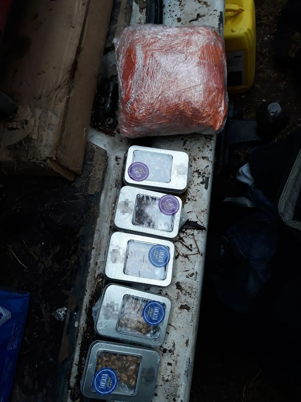 Ruházatának és poggyászának átvizsgálásakor fóliába tekert csomagot és több kisebb méretű fémdobozt találtak. Sz. Attila elmondta, hogy a csomagban egy kilogramm amfetamin, a fémdobozokban pedig meszkalin gomba van. Élettársának táskájából a férfi elmondása szerint saját használatra szánt kábítószer került elő.