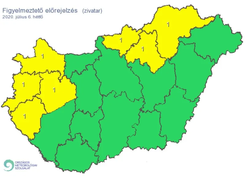 Elsőfokú figyelmeztetést adott ki az OMSZ.