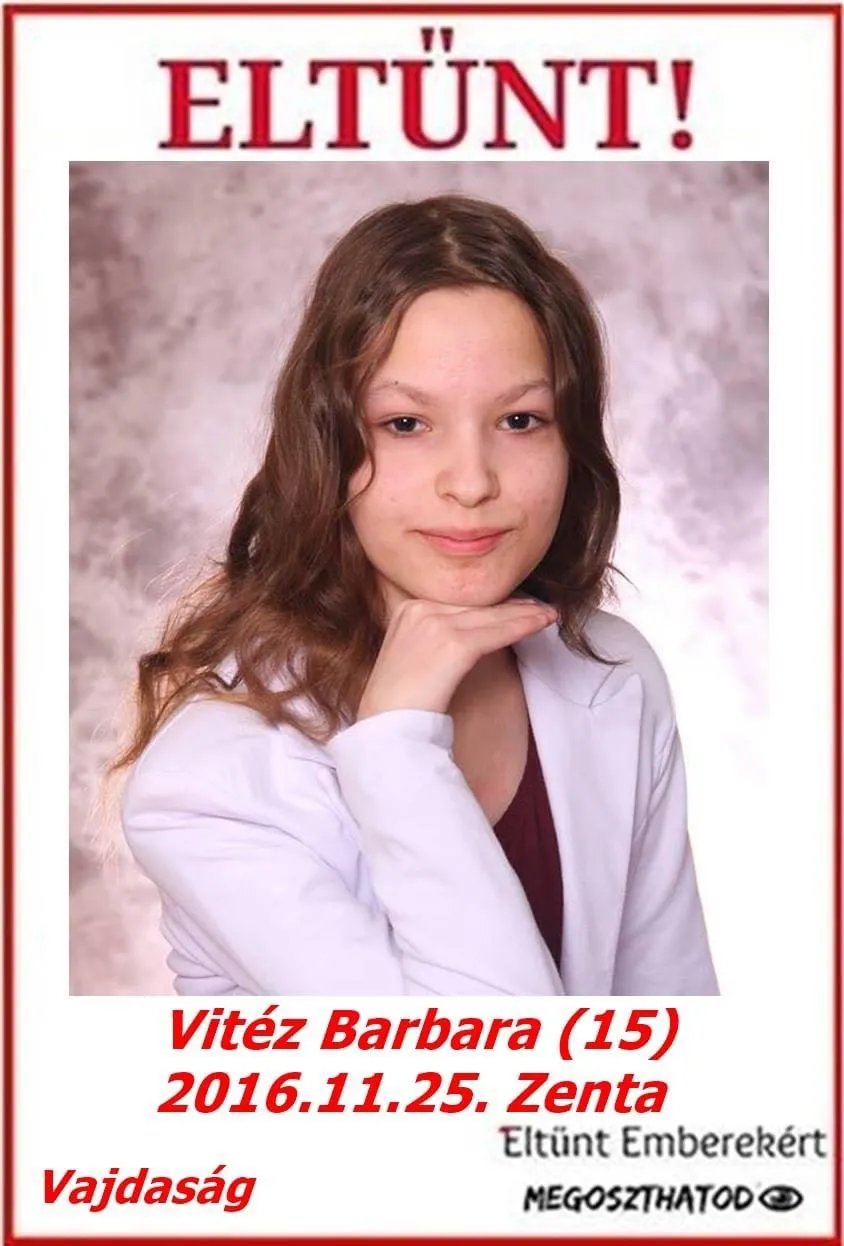 Rejtélyes bizonyítékok utalnak arra, hogy Vitéz Barbara él. Szülei szentül hiszik: 19. születésnapját ünnepelhette a napokban Vitéz Barbara, a zentai diáklány, aki 4 éve tűnt el. A holttestét nem találták meg, szülei, Endre és Melinda viszont a mai napig hazavárják és biztosak benne, hogy él.