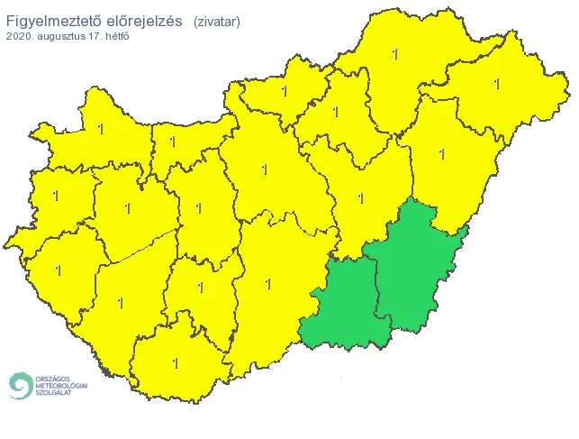 Hétfőn az éjszakai, reggeli zivatarok távozása után átmeneti szünet valószínű, de délután, este nyugat felől újabb csapadékzóna érkezése várható, főként az északi tájakon (és legkisebb eséllyel délkeleten) ismét aktív zivatartevékenységre kell készülni – írja az OMSZ.