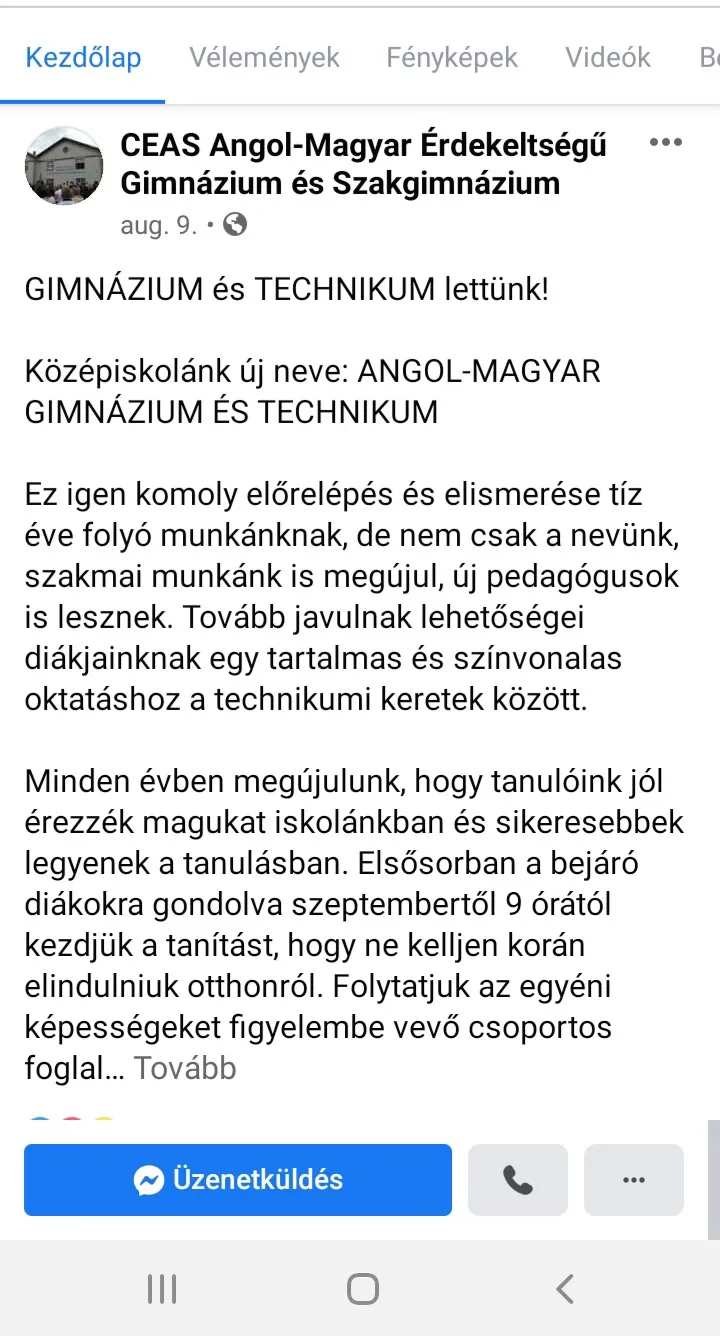 Az igazgató a Facebook-oldalon jelentette be az iskola megszűnését, amit azzal indokolt, hogy csökkentették az iskola állami támogatását. Két nappal korábban még a tanévkezdés mikéntjéről posztolt.