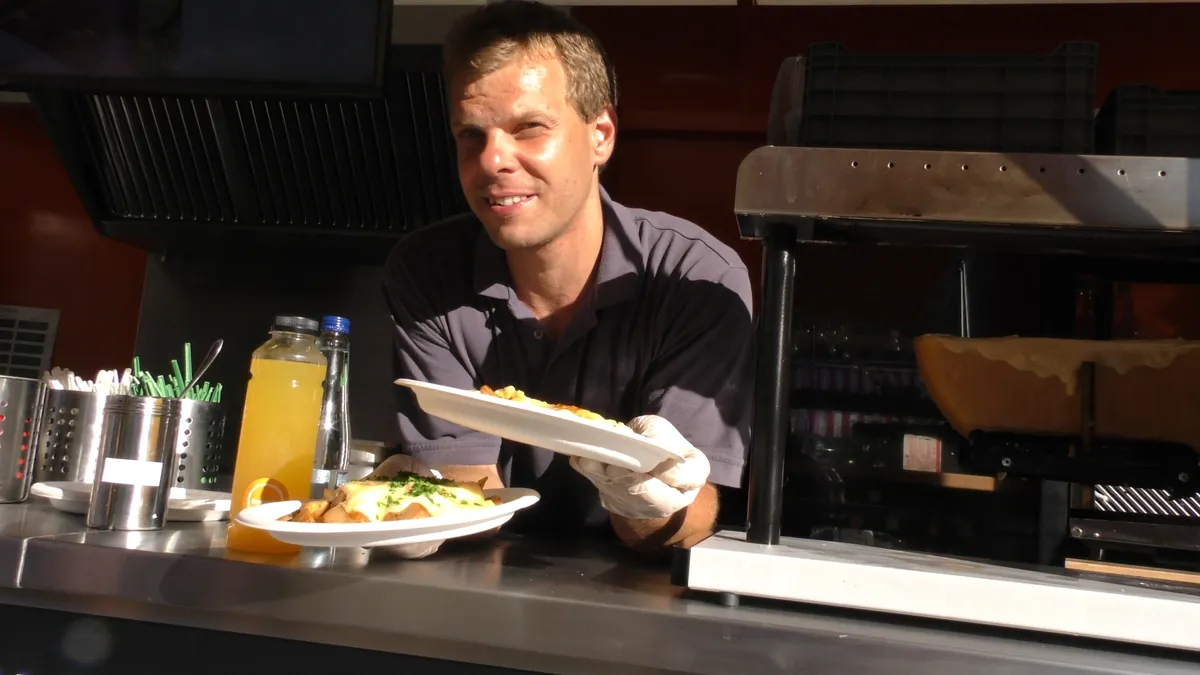 „Mindig is a vendéglátásban dolgoztam, gyorséttermekben vagy kávézókban helyezkedtem el, ez az első büfékocsim. Oxigénhiánnyal születtem, ezért nehezen mozgok, és olykor akadozik a beszédem. A korábbi helyeimen emiatt úgy néztek rám, hogy nem tudok semmit és sérült vagyok. Itt viszont pont az ellenkezőjét tapasztalom a kollégáim és a betérők részéről is! Egy Food Truck szabadabb, mint egy kávézó, nem csak felveszed a rendelést és köszönsz, hanem mehet a poénkodás, beszélgetünk a vendégekkel, míg várják az ételeket. Más a hangulat, jobb a közérzetem” – meséli a Ripost-nak Tunyogi Imre, miközben az újabb adag raklett sajtot tesz a helyére.