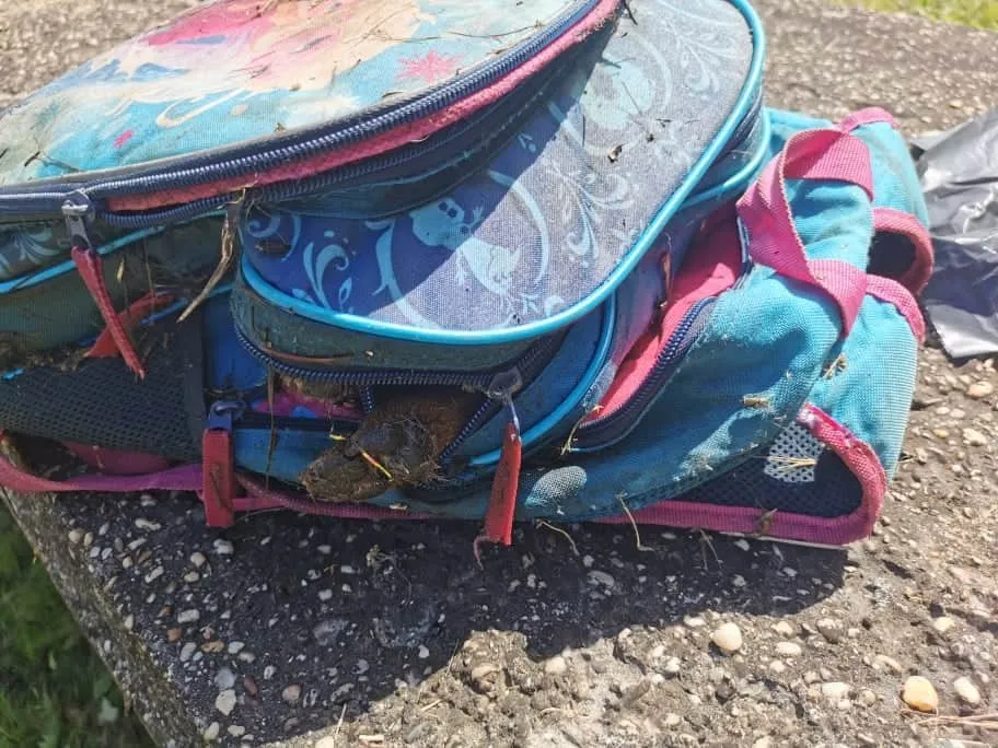„Egy idős néni takarította délután a háza melletti árkot, amikor észrevett egy iskolatáskát, amiből mintha egy kutyaláb lógott volna ki, de hozzányúlni nem mert. A helyszínre érve láttuk, hogy valóban, egy kutyatetem van belegyömöszölve az iskolatáskába„ – mesélte felháborodva a Ripost-nak Herczig József. „Amikor a táskába került, már biztosan nem élt a kistestű kutya. Valószínűleg így akart a gazdi megszabadulni kedvencétől, miután az otthon elpusztult. Chip nem volt benne, így beazonosítani nem tudtuk, kamera sincs a közelben. Szomorú, hogy egyre gyakoribb a hasonló eset, és nem is gondolnak bele az emberek abba, hogy mit okoznak ezzel, például annak a gyereknek a lelkében, aki megtalálja a tetemet.”