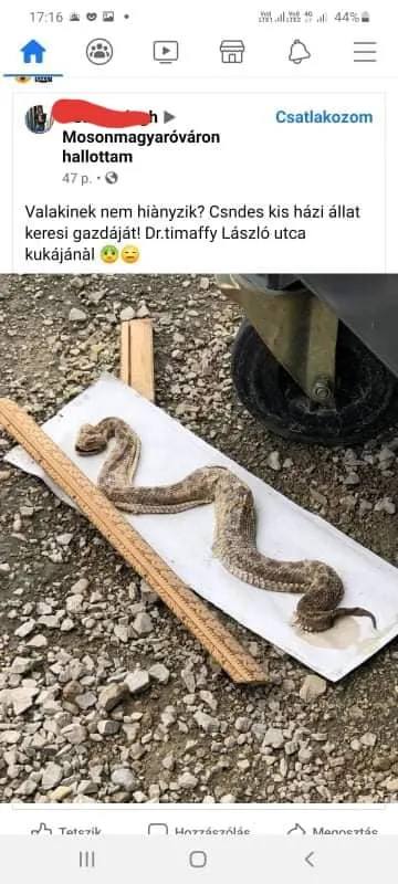 Döbbenetes fotót kapott Both Zoltán vadállatbefogó nemrég: egy kuka mellett furcsa kígyó-tetemet találtak Mosonmagyaróváron.