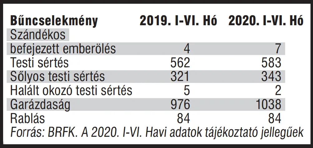 Kiderült: míg tavaly az első félévben négy ember vált gyilkosság áldozatává, addig idén hét. De nőtt a testi sértések száma is és gyakoribb volt a garázda magatartás: 62-vel több eljárás indult ilyen ügyben.