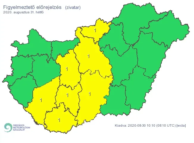 Somogy és Zala megyében másodfokú riasztás van érvényben az eső miatt, 24 óra alatt akár több mint 30 mm csapadék hullhat. Hat megyében, (Nógrád, Pest, Fejér, Bécs-Kiskun, Tolna és Baranya megyében) szintén zivatarok várhatók – írja az OMSZ.