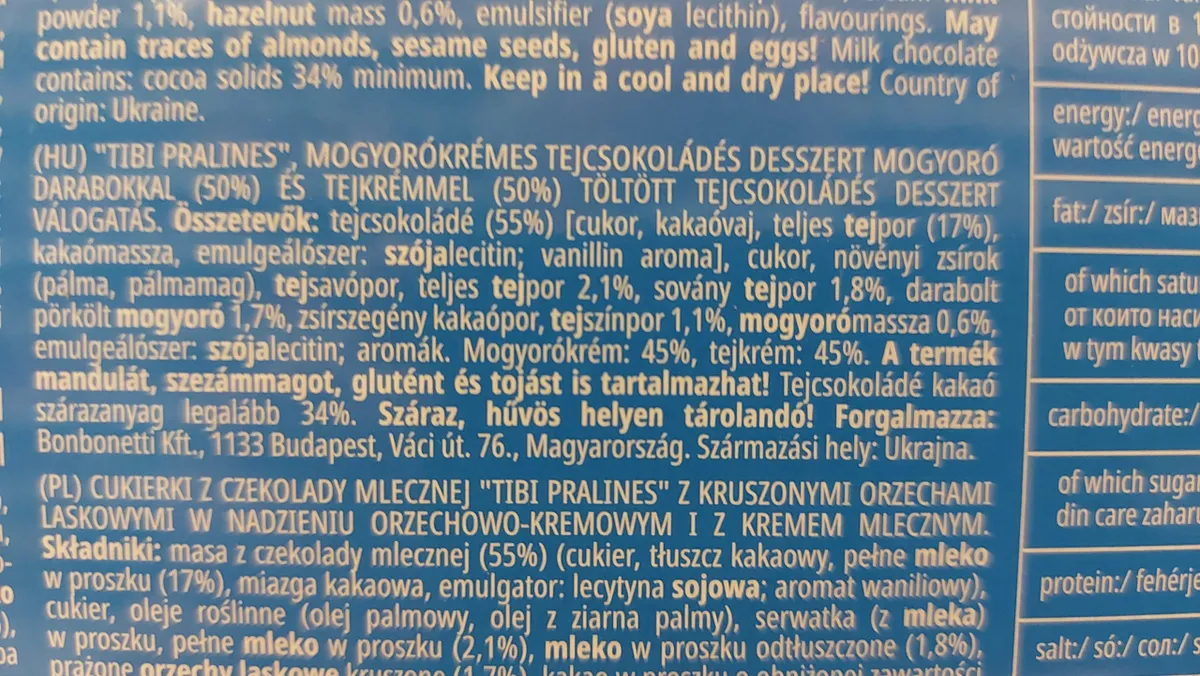 Pedig a terméken jól olvasható, hogy a származási hely: EU-n kívül. Ugyanez a felirat található a Balaton szeleten is, míg a mogyorós Tibi pralinét Ukrajnában gyártják.