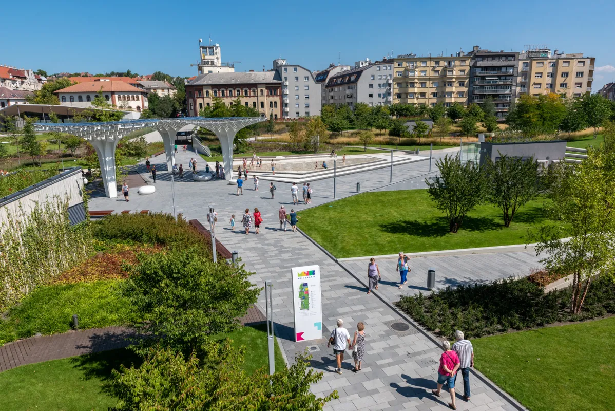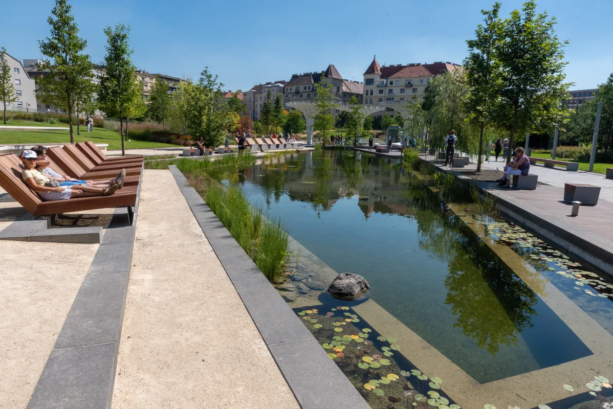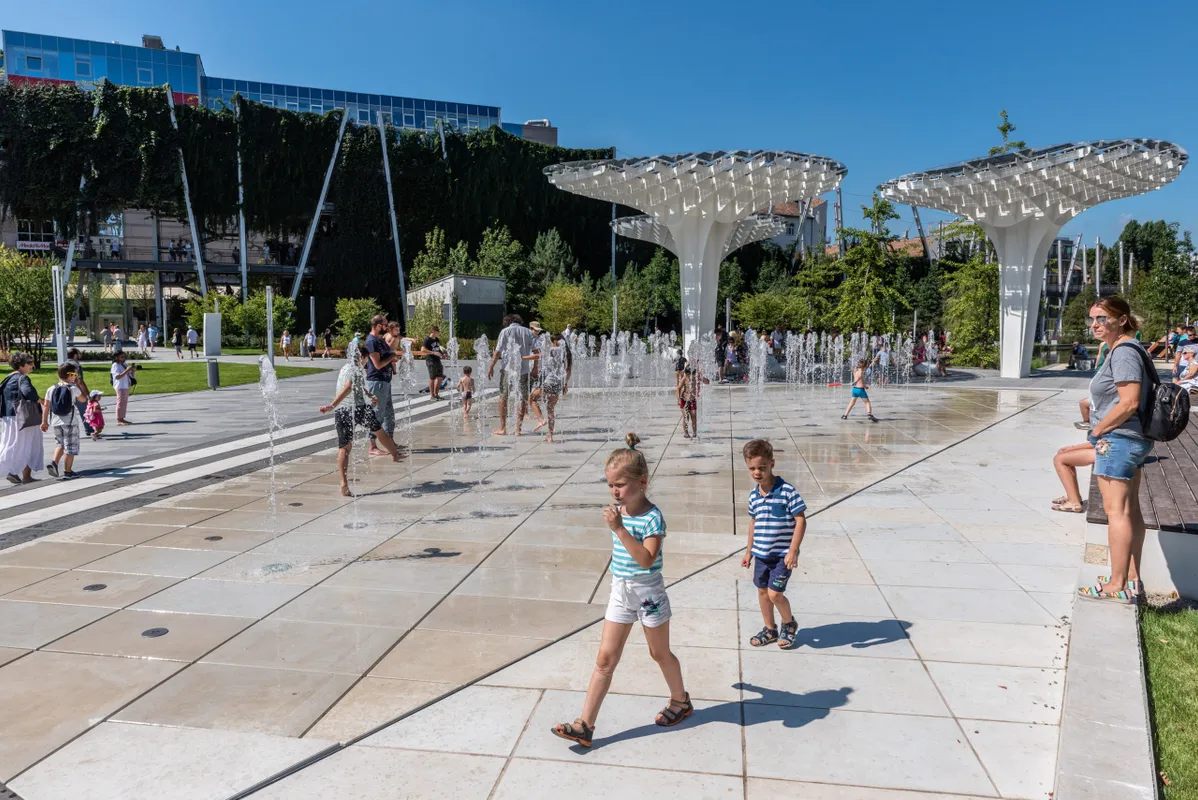 Panorámalifttel ellátott függőkert, napelemfák, hűsítő szökőkút, napágyak és egyebek mellett egy kristálytiszta vízű tó várja a budapesti Széllkapu Parkban a látogatókat. Már egy nappal az átadás után mosolygósan sétálgattak itt kisgyermekes családok, sőt idős emberek is.