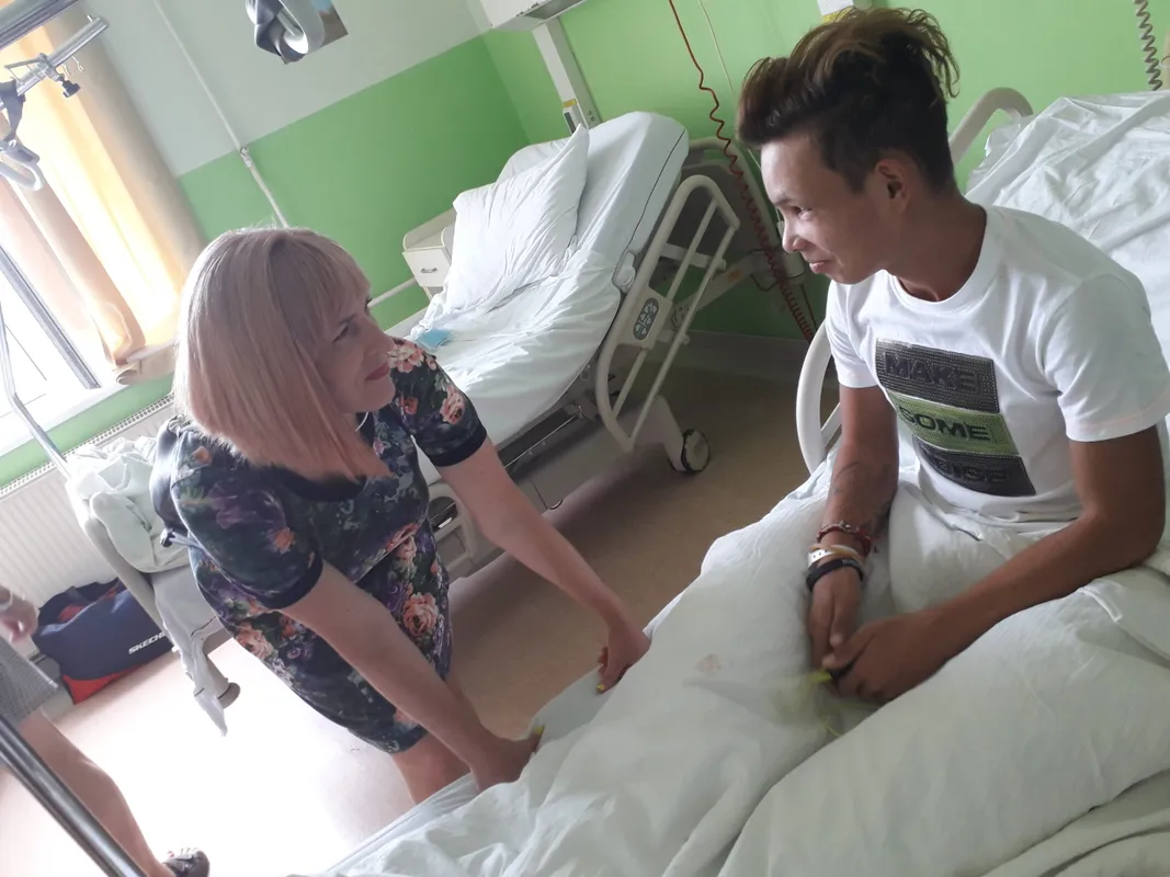 Varga Brigitta és pártfogoltja, Kanalas Dávid a Bajcsy kórházban Fotó: Ripost