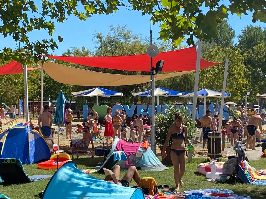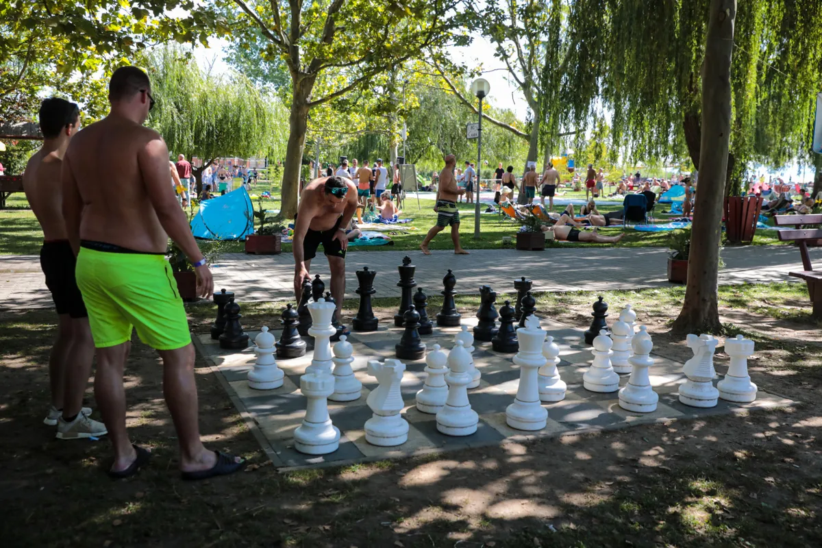 Az ábrahámhegyi fizetős strandon is hatalmas a tömeg.