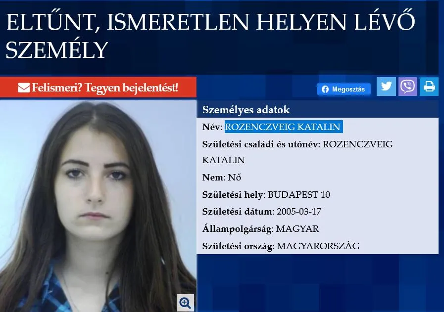A napokban több kamasz is elszökött otthonról * A 14 éves Roland Csepelről tűnt el augusztus 21-én, később édesanyja közölte, hogy épségben megkerült. * A 15 éves Katalin Székesfehérvárról tűnt el, őt jelenleg is keresi a rendőrség és a családja, nagynénje. A kislány zöld pólót, farmert, fekete bőrkabátot és fehér edzőcipőt viselt eltűnésekor. Fotó: police * A 18 éves Márk Veszprémben bulizott a szüleivel hétvégén, de hajnalban elvált tőlük, és azóta nem tért haza. A rendőrség egyelőre nem körözi, mivel már nagykorú, de a fiú családja jelezte, hogy már folyamatban van eltűntté nyilvánítása.