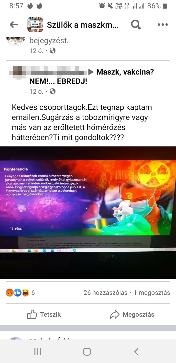 Ostobaságok tárházával indokolják a maszkellenes szülők, miért nem akarják engedni, hogy megmérjék gyermekük testhőmérsékletét. Csoportot is alakítottak a legnagyobb közösségi portálon, ahol egymást hülyítik. Van az érvelésük között a földönkívülitől a csipbeadásig és a tobozmirigy befolyásolásáig minden!