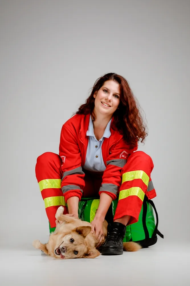 Dr. Kiss-Dala Noémi infektológus dr. Szlávik János közvetlen munkatársa, helyettese és jobbkeze. A fiatal doktornőre is rengeteg többletfeladatot ró a járvány. A fotózáson pillanatok alatt bensőséges kapcsolatba került az ebekkel.