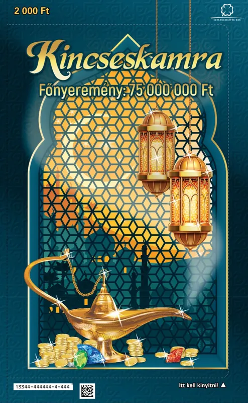 A hazai lottótársaság újonnan kibocsátott Kincseskamra elnevezésű sorsjegye kétezer forintba kerül, 10 darab egyszerű játékot tartalmaz és akár 75 millió forintot is lehet vele nyerni. Az új termék exkluzív kivitelű, amelynek ablakát – egy perforáció mentén – kinyitva olyan érzést kelt, mintha egy valódi kincseskamrába lépnénk be, amely tele van mesés keleti kincsekkel. Az 1., 3., 5., 7. és 9. játékban az a termék nyer, ahol a játékos egy játékban a kaparófelület alatt 3 egyforma szimbólumot talál. A 2., 4., 6., 8. és 10. játékban pedig az, amelyen a játékos egy játékban a kaparófelület alatt a „NYERŐ SZÁMOK” felirat által rejtettek valamelyikét megtalálja az „ÖN SZÁMAI” felirat alatti számok között.