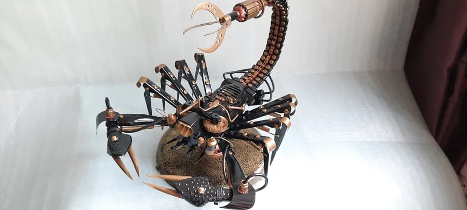 Egy autószervizben dolgozom. Egyszer, munka közben megláttam néhány alkatrészt, amikről egy skorpió farka jutott eszembe. Eldöntöttem, munka után kerítek még hozzá néhány elemet, és összeszerelem. Így is történt, a végeredmény pedig olyan jól sikerült, hogy azóta nincs megállás. Ennek már hat éve