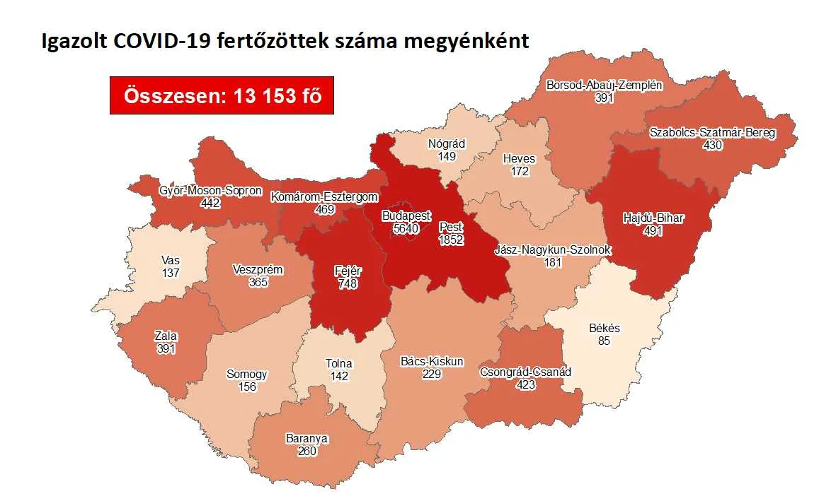844 újabb magyar állampolgárnál mutatták ki az új koronavírus-fertőzést (COVID-19), ezzel 13 153 főre nőtt a hazánkban beazonosított fertőzöttek száma.