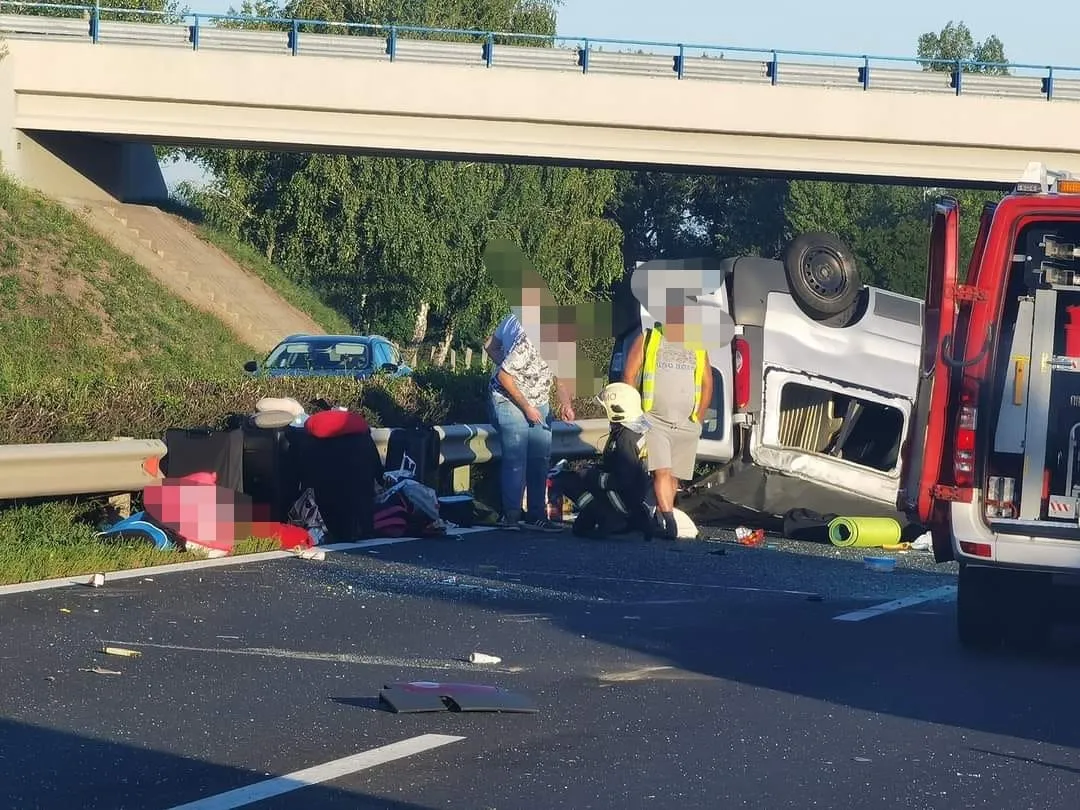 Súlyos baleset az M1-esen: karambolozott egy utasokkal teli kisbusz, az ütközés erejétől a tetején állt meg