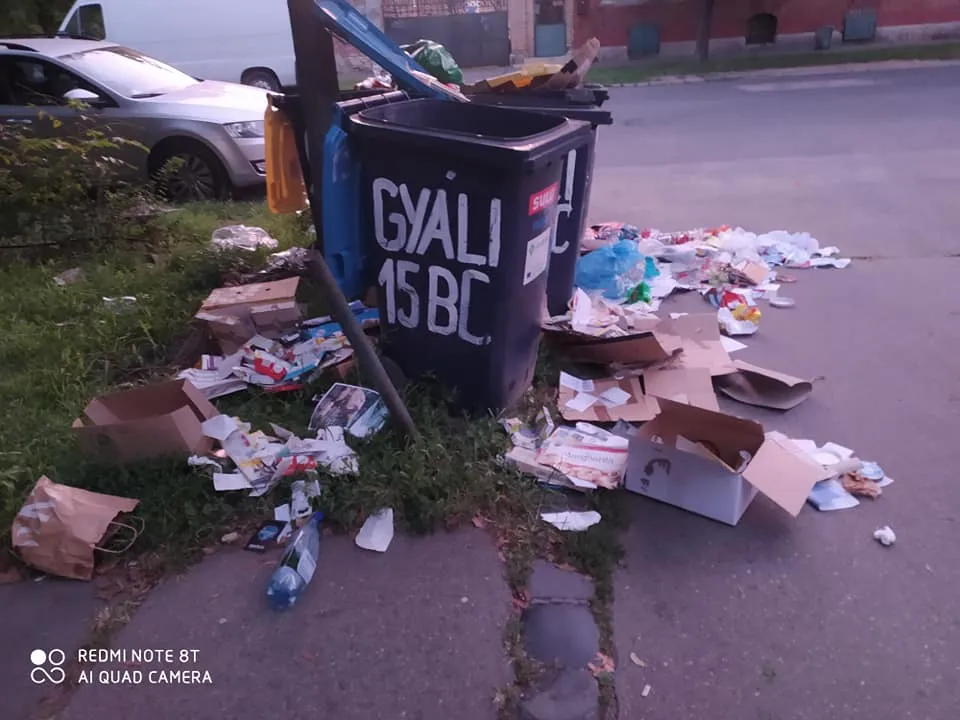 Ferencvárosban, úgy tűnik, néhányan sokat „dolgozhattak” a kirakott szemetesek körül, ugyanis gyakorlatilag az összes szemetet kitúrták. Jutott belőle az útra, és a járdára is.