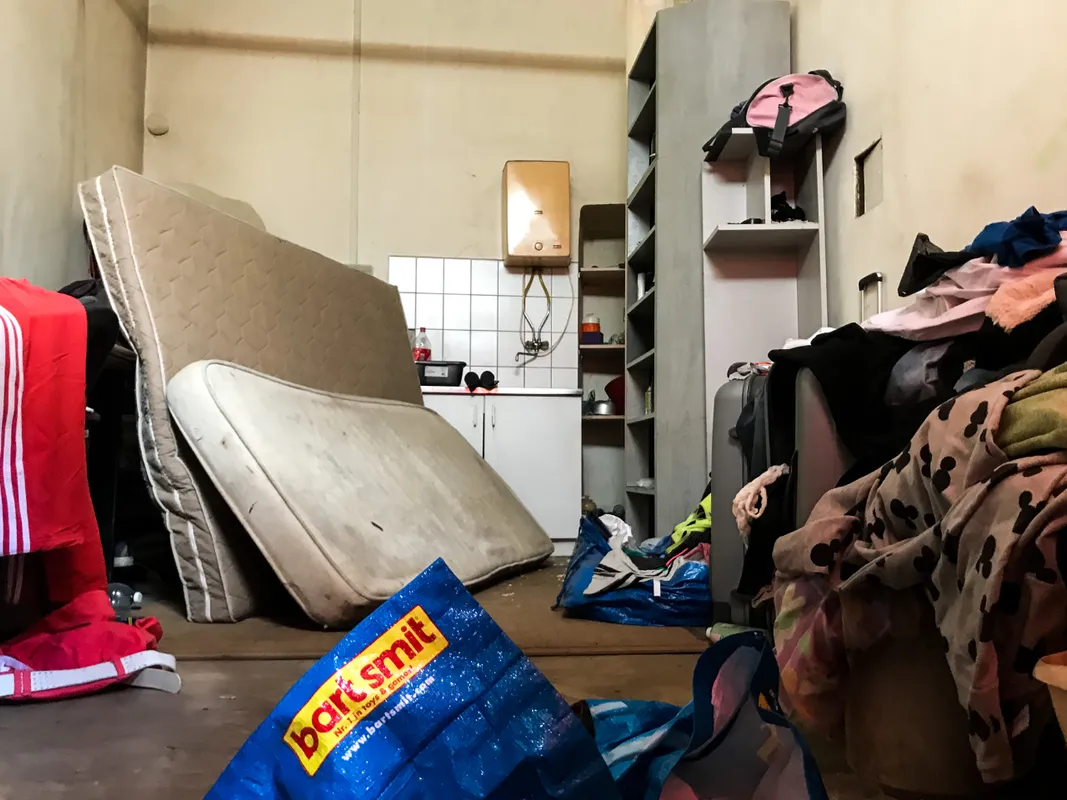 Amit láttunk, az viszont elképesztő: a koszos matracoktól a szeméten, ruhákon, ételmaradékon át az italos üvegekig ebben az üzlethelyiségben minden van, gyakorlatilag teljesen egyértelmű, hogy itt valaki, vagy valakik valóban laknak. Hiába szólongattuk azonban őket, nem válaszolt senki, de aztán a fotókon is láttuk: a lakó épp nem tartózkodott „otthon”.