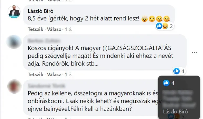 Ez azonban, és Bíró korábbi durva rasszista kirohanásai még nem bizonyítják minden kétséget kizáróan, hogy ő vagy egy vele megegyező nevű másik felhasználó lájkolta-e ismerőse „koszos cigányozó„ kommentjét.