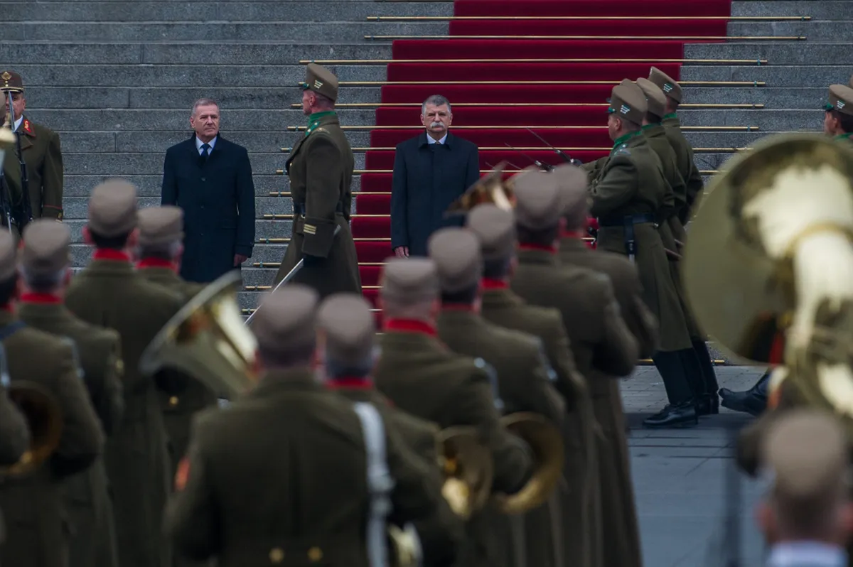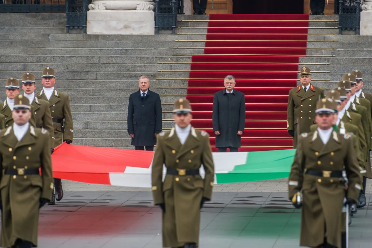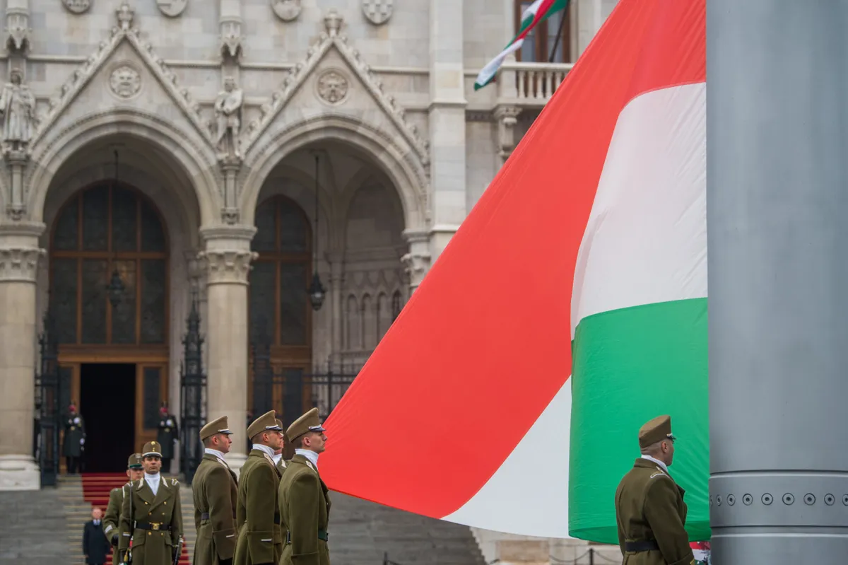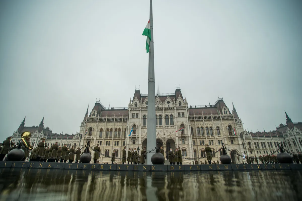 Katonai tiszteletadással Kövér László, az Országgyűlés elnöke, Benkő Tibor honvédelmi miniszter és Korom Ferenc, a Magyar Honvédség parancsnoka jelenlétében felvonták a nemzeti lobogót az 1956-os forradalom és szabadságharc 64. évfordulóján péntek reggel a Parlament előtti Kossuth Lajos téren.