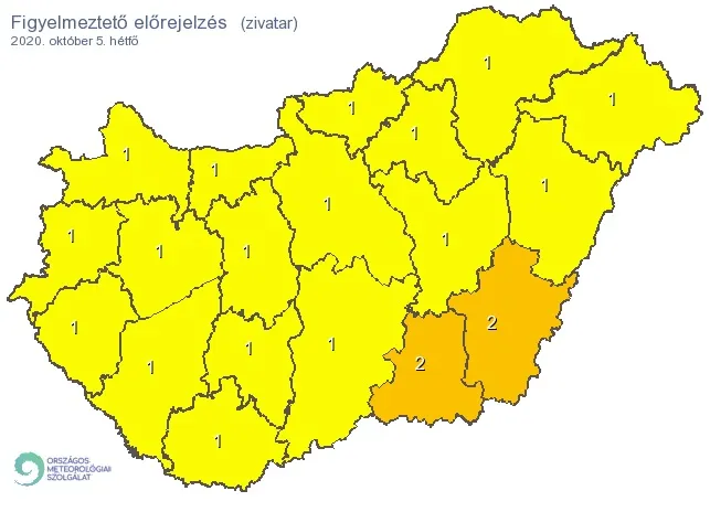 Általánosan első fokú figyelmeztetést adtak ki, de két megyében másodfokú van érvényben.