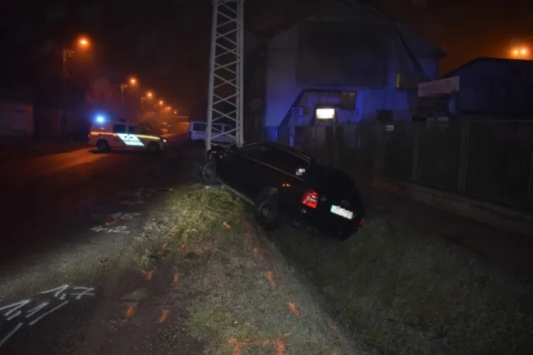 Felsővezetéket tartó oszlopnak ütközött egy személygépkocsi, amelyben ketten ültek. Egy férfi vezetett, barátnője a jobb első ülésen utazott, a biztonsági övet nem használták.
