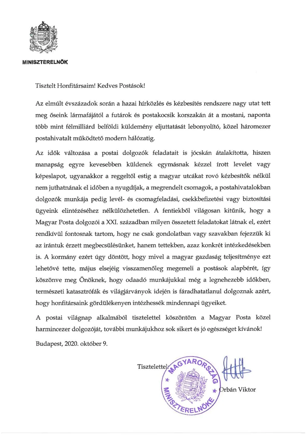 Magyarországon közel 30. 000 postai dolgozó tevékenykedik, akiket Orbán Viktor levélben is köszöntött.