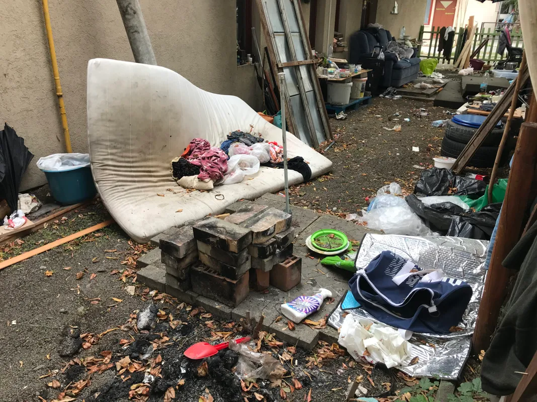 A környező boltokban azt mondják, két hajléktalant elvittek a rendőrök, de az összehordott szemét maradt és mindig jönnek újabbak.