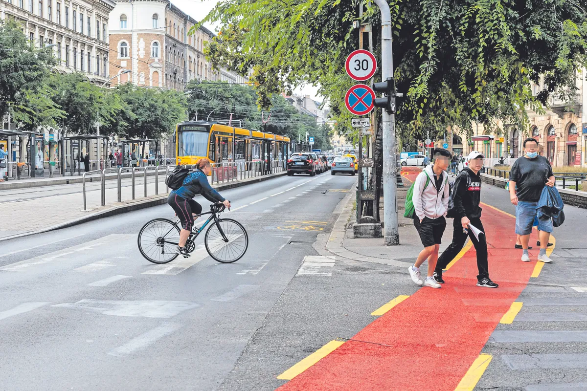 R.M.: Szerintem valójában nincs ilyen vita, én is egyszerre vagyok autós, kerékpáros és gyalogos, ezért az élhető város pártján állok. Amikor ükszüleink a 19-20. század fordulóján Budapest belvárosát megépítették, még nem voltak autók. Úgy alakították ki az utcákat, tereket, hogy a gyalosok, a sétálók kényelmesen elférjenek, legyen tér leülni, szemlélődni, beszélgetni, kártyázni, sakkozni, élni. Az 1960-as évektől azonban az élet elkezdett megváltozni. Egyre inkább az autókra kezdtük optimalizálni a városainkat, növekedett a sávok száma és a forgalom, és eljutottunk oda, hogy sok helyen ma már csak az út alatt tudunk tudunk átjutni a túloldalra, minden terület eltűnt, amit nem a forgalom, azt a parkoló autók foglalják el, a belvárosi utcák jelentős részében egy babakocsival már nem is lehet közlekedni. Nyugat-Európa városaiban évtizedek óta folyamatosan növekszik a forgalomtól elzárt, vagy forgalomcsillapított területek aránya, de el lehet utazni Prágába, Ljubljanába is. Az egész világ ebbe az irányba halad! Csak érdekességképp mondom, hogy Boris Johnson előszavával most jelent meg az angol kerékpárfejlesztési program, a következő években 800 milliárd forintnyi összeget kívánnak erre a célra fordítani! Tarlós István főpolgármestersége idején még 2013-ban a Balázs Mór tervben elfogadták, hogy a kerékpáros közlekedés részarányát 2030-ra az akkori két százalékról tíz százalékra kell növelni. Ha többen járnak biciklivel, vagy az agglomerációból többen bicikli-vonat-bicikli kombinációval járnának be autó helyett, az nem ellentétes az autósok érdekeivel, sőt! Minél többen közlekednek biciklivel, annál inkább csökkennek a dugók, és a környezeti terhelés.