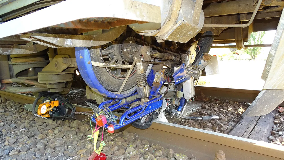 A férfi robbanómotoros kerékpárjával a fénysorompó tilos jelzése ellenére kelt át a vasúti átjáróban – tájékoztatott a rendőrség.