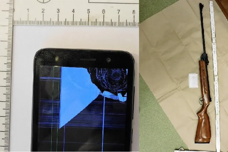 Mint kiderült, a két helyi lakos egy korábbi vitájuk végére akart pontot tenni. A 32 éves férfi megjelent 44 éves haragosa házánál és a kerítésen keresztül kiabálni kezdtek. Kis idő elteltével azonban az idősebb férfi bement a házába és egy légpuskával a kezében jött ki, majd rácélzott vitapartnerére és elsütötte a fegyvert. A férfi combját eltalálta, viszont a zsebében lévő telefonja megállította a lövedéket, így végül senki sem sérült meg.