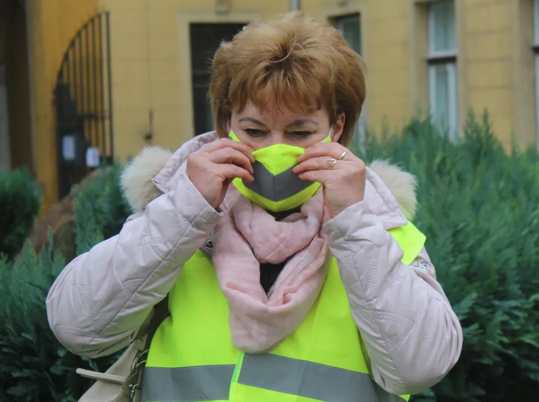 Olyan biztonságtechnikai eszközöket osztogattak a rendőrök, amelyek szájmaszkként védelmet nyújtanak a koronavírus-járvány idején, míg felületük láthatósági mellényként működik.