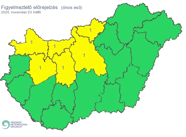 Az OMSZ figyelmeztető előrejelzése szerint gyenge ónos eső várható Pest, Fejér, Győr-Moson-Sopron, Komárom-Esztergom, Nógrád és Veszprém megyében. Általában néhány tized milliméternyi csapadék lesz. Még Somogy és Zala megyében tartós és sűrű köd fogja veszélyeztetni a közlekedést.