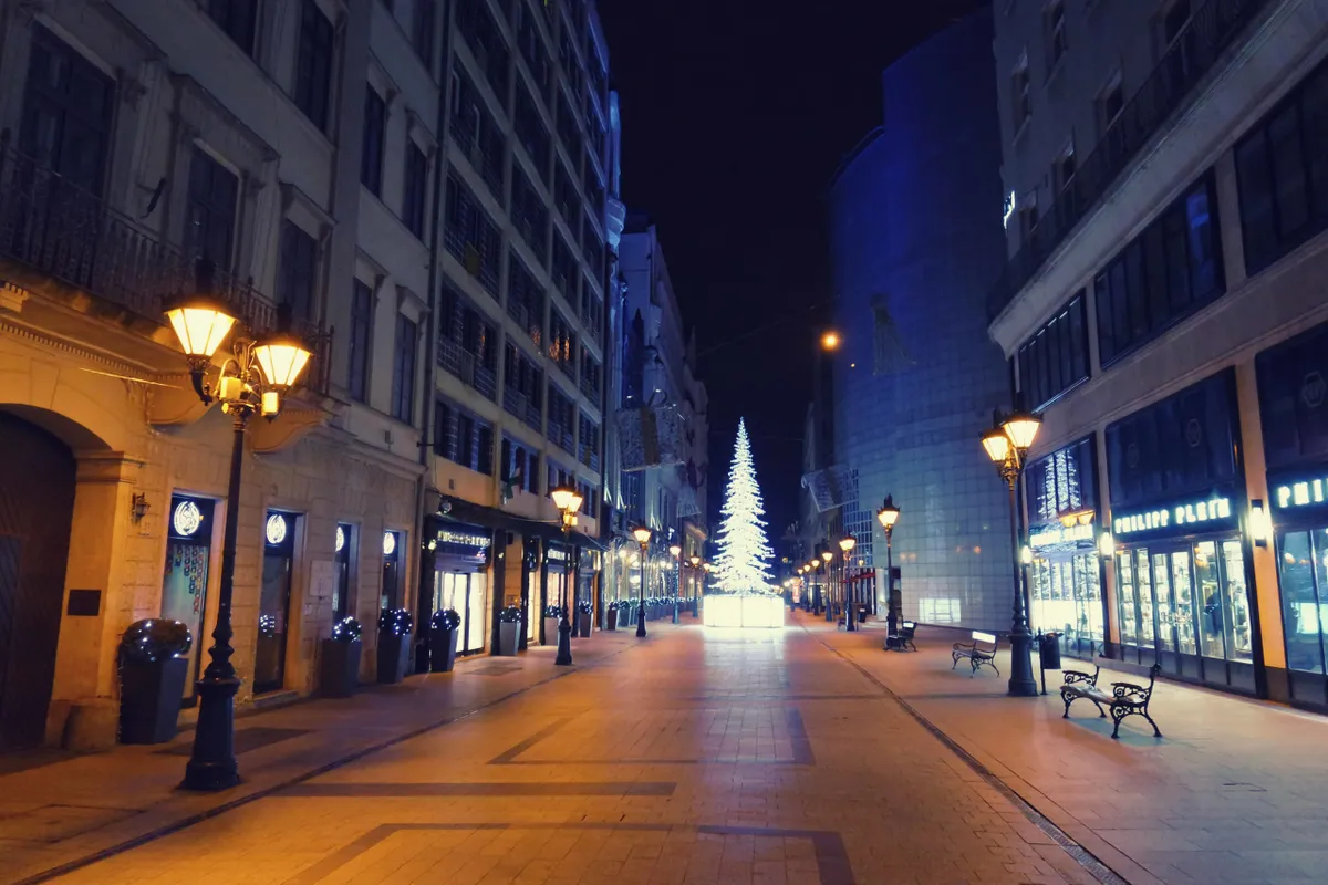 A mindig zsúfolt Váci utca teljesen kihalt, senki sem sétál a karácsonyi fények között