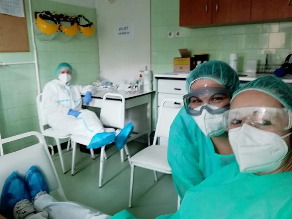 V.V.: Kétszer három órát vagyunk a vörös zónában, tehát a fertőzött részen teljesen beöltözve, és kétszer három órát a zöld zónában, ami kiszolgálja a vöröset. Ott készítünk elő mindent, amire majd szükségünk lesz a fertőzött területen. Mielőtt bezsilipelek, elmegyek mosdóba és akkor kibírom, amíg kijövök. Persze nem iszom eleget, ezért esténként fáj a fejem.