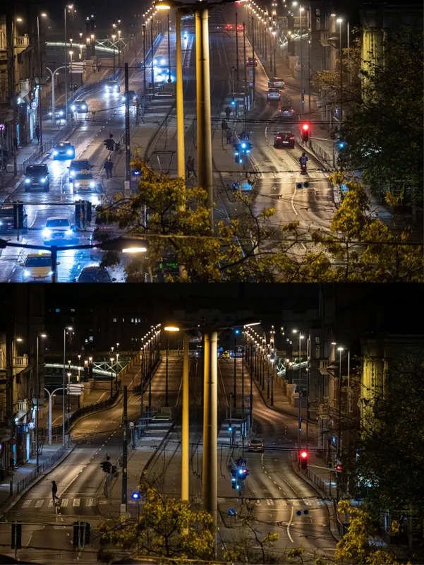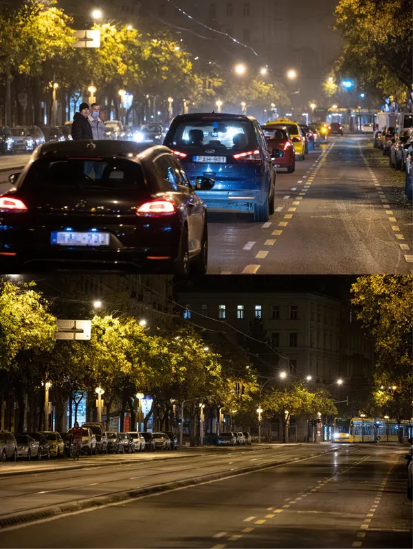 A kijárási tilalom előtt és után készültek fotók rendkívül jól megmutatják, mennyire más most az élet este a fővárosban.