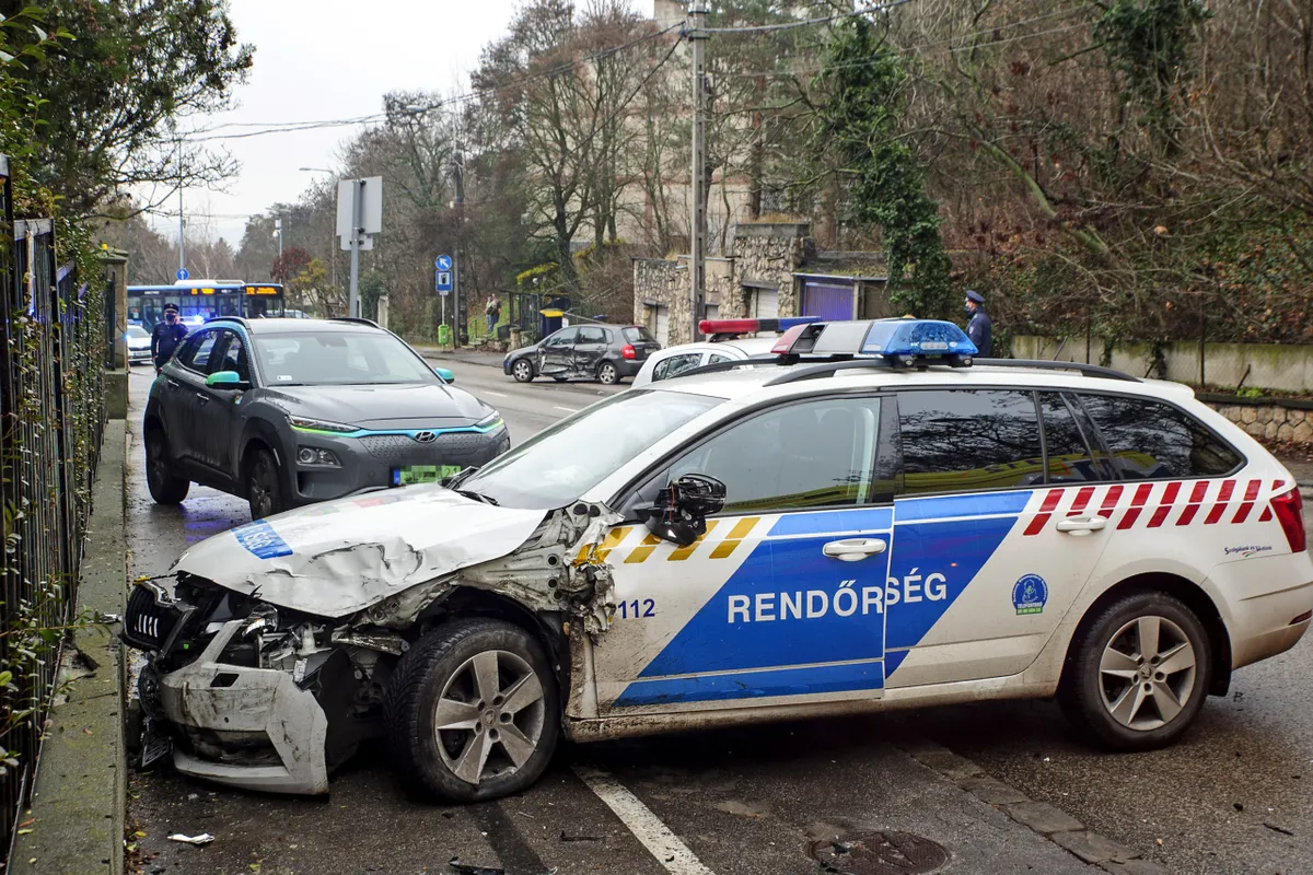 Rendőrautók karamboloztak szerdán Budapesten, az Istenhegyi úton, egy rendőr kórházba került.