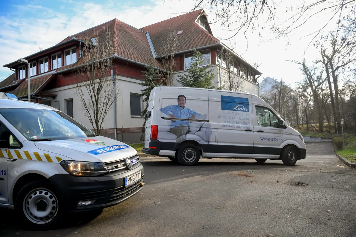 A koronavírus elleni oltóanyagot, a Pfizer-BioNTech vakcinát szállító kisteherautó érkezik a Debreceni Egyetem Klinikai Gyógyszertárához 2020. december 26-án (Fotó: MTI / Czeglédi Zsolt)